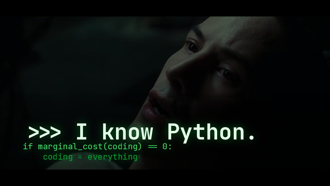 When the marginal cost of coding is zero, everything becomes a coding problem